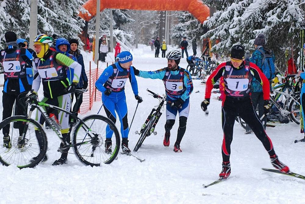Зимний триатлон — это сочетание бега, велогонки, лыжного кросса.