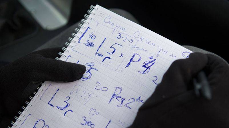 Стенограмма штурмана – запись в виде условных обозначений учитывающая особенности участков трассы и список поворотов. При создании записи учитывается ритм диктовки удобный пилоту. Штурман отвечает за анализ, запись и диктовку стенограммы.