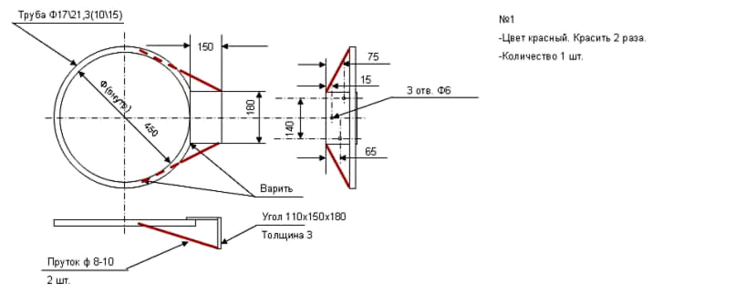 Для упрощения задачи в домашних условиях концы кольца можно прикрутить саморезами к деревянному бруску, который несложно закрепить уже к щиту. Кольцо следует окрасить в несколько слоев атмосферостойкой эмалью красного цвета. Чертежи кольца по стандарту представлены на следующем фото.