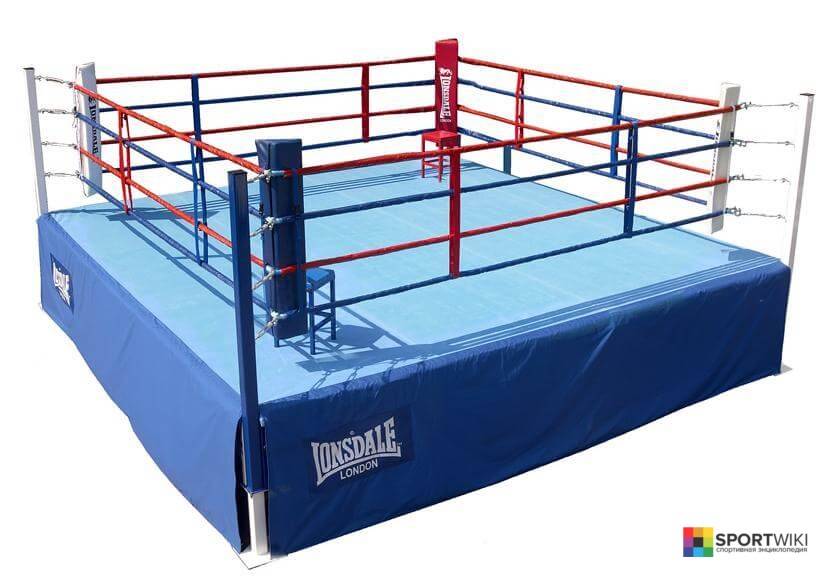 - Размер ринга для бокса. Ринг должен иметь форму квадрата со стороной минимум 4,90 м и максимум 6,10 м внутри канатов. При проведении международных чемпионатов должен использоваться ринг со стороной 6,10 м. Ринг должен находиться на помосте высотой не менее 91 см и не более 1,22 м от уровня пола или основания.
