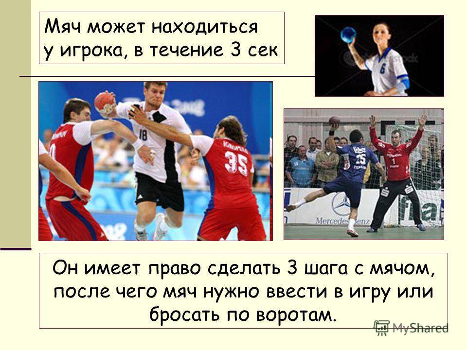 Он имеет право сделать 3 шага с мячом, после чего мяч нужно ввести в игру или бросать по воротам. Мяч может находиться у игрока, в течение 3 сек
