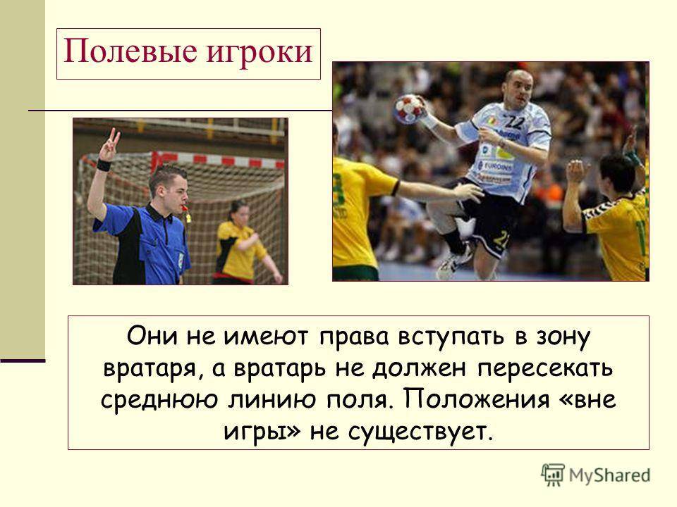 Они не имеют права вступать в зону вратаря, а вратарь не должен пересекать среднюю линию поля. Положения «вне игры» не существует. Полевые игроки