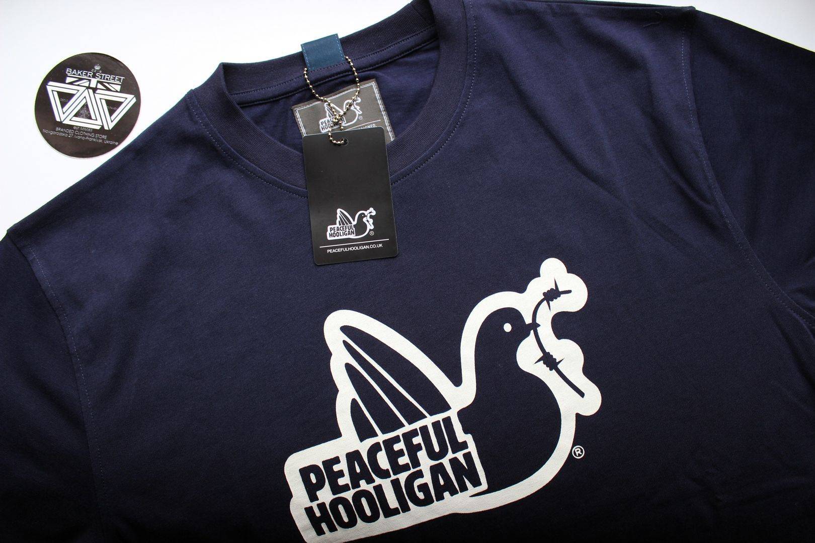 Логотипом Peaceful Hooligan стал голубь с кусочком колючей проволоки в клюве. Это переосмысление «мирного голубя», получившего известность после окончания Второй мировой войны на Всемирном конгрессе сторонников мира. Пабло Пикассо нарисовал для конгресса эмблему с белым голубем и оливковой ветвью в клюве.