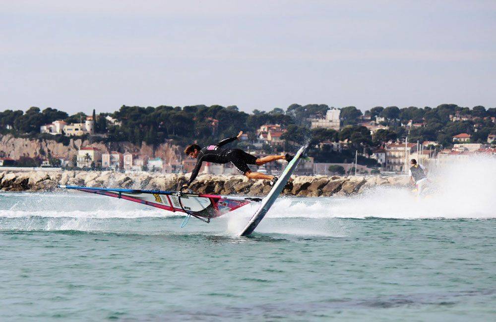 Это один из самых старых трюков виндсёрфинга. Его изобрёл итальянский райдер Чезаре Кантагалли.