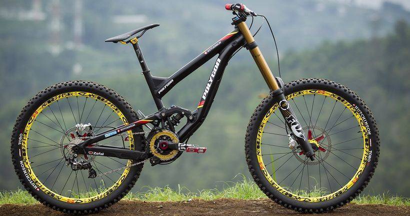 Даунхилл велосипед – это всем знакомый двухподвесный горный велосипед. Несмотря на внешнее сходство этого байка с собратьями из фрирайда (из-за широкой рамы), велосипед для скоростного спуска имеет ряд особенностей: