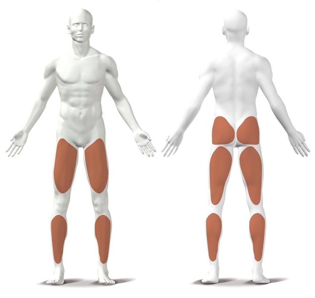 Мышцы ягодиц, бедер, ног. Все они работают сообща, приводя в движение это простое механическое устройство. Мышцы ягодиц передают нагрузку мышцам бедра, икрам ног, благодаря чему, стопа крутит педали.