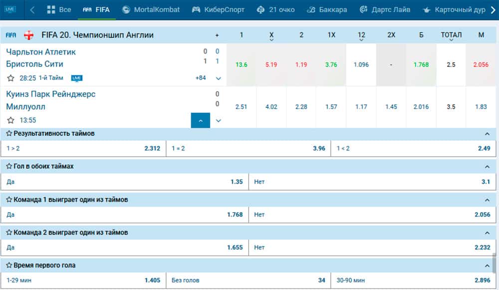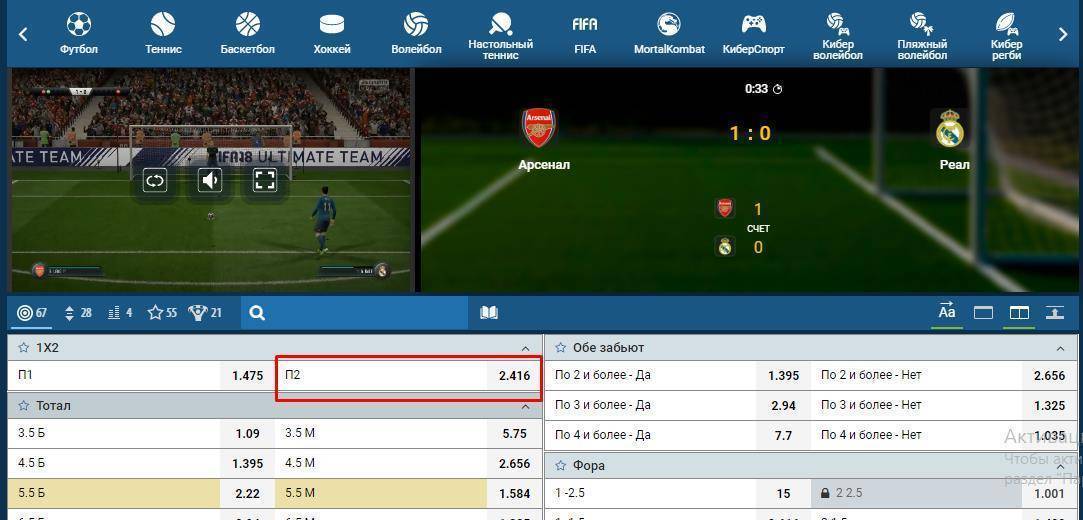 Все же, если брать в расчёт ставки на традиционный футбол и виртуальный, то мы найдем много общего. Я говорю об исходах. Здесь также есть ставки на победителя, форы, тоталы и другие.