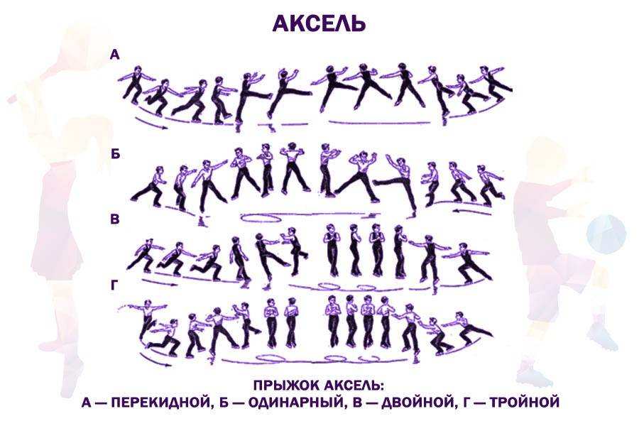 - в силу специфика прыжка целых оборотов не бывает и, к примеру, двойной аксель — это 2,5 оборота);