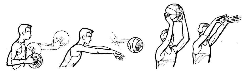 Играть в баскетбол также можно несколькими техниками бросков, например: от груди, от головы, через плечо или голову