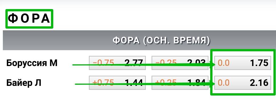 Как обозначена Фора 0 в росписи букмекера?
