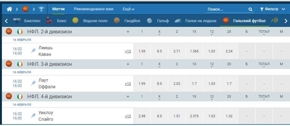 В качестве примера разберем линию, которая сейчас доступна на гэльский футбол: