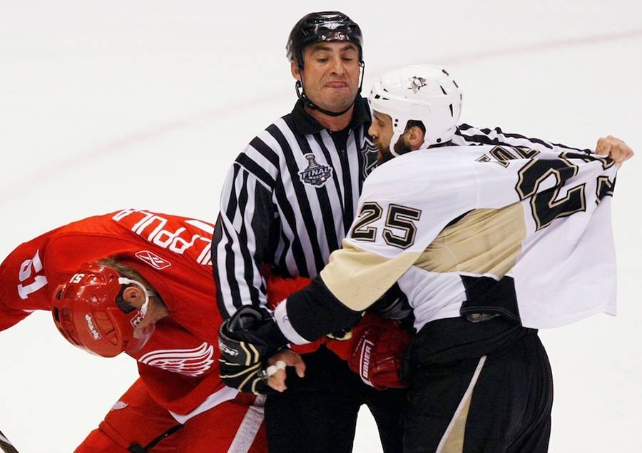 Подавляющее большинство игроков Национальной Хоккейной Лиги знает о том, что нельзя пересекать красную линию во время разминки, особенно, перед важным матчем. Это правило активно поддерживается хоккеистами и нарушается крайне редко. В противном случае у болельщиков появится шанс наблюдать яркую схватку на льду еще до начала матча, сложно не согласиться, что за подобным всегда интересно наблюдать. Это правило запрещало бросать шайбу так, чтобы она пересекала две линии. Таким образом, игрок не мог принимать шайбу, посланную из зоны защиты, если сам он находился за центральной красной линией, то есть на половине площадки чужой команды. Это необходимо, чтобы не мешать игрокам с другой половины площадки. Все честно – у каждого своя территория, а нарушение правила чревато последствиям. Один из таких случаев произошёл в 1987 году, когда знаменитый Клод Лемье из «Монреаля» запустил шайбу в пустые ворота «Филадельфии» в конце разминки. После этого последовала одна из величайших потасовок всех времён, а особый колорит ей предал тот факт, что часть хоккеистов вернулась для драки из раздевалки и далеко не все были полностью одеты в амуницию.