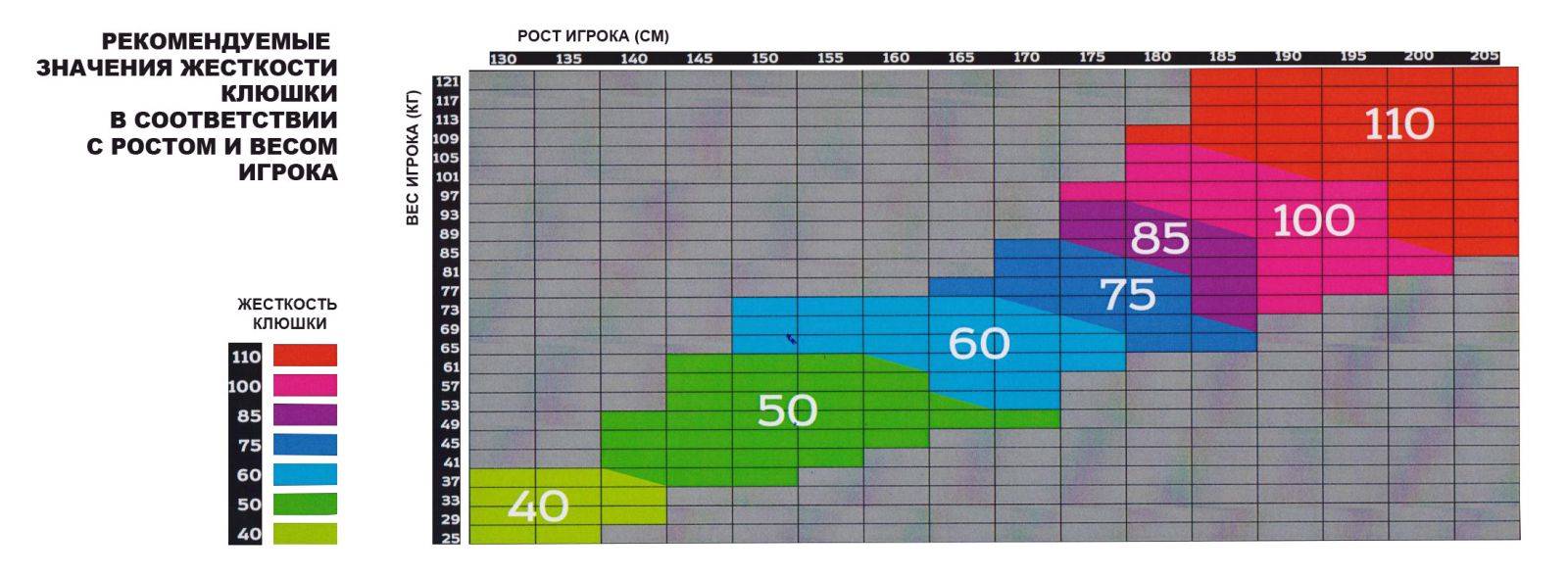 Этот показатель привязан к весу спортсмена. Единица жесткости (Flex) соответствует 1 кг веса хоккеиста. С возрастанием значения Flex, возрастает жесткость.
