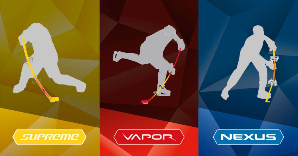 Производители хоккейной формы постоянно обновляют и расширяют свои линейки, и это дело не прошло мимо производства клюшек. Только у Bauer три, линеек для клюшек: Vapor, Supreme и Nexus.