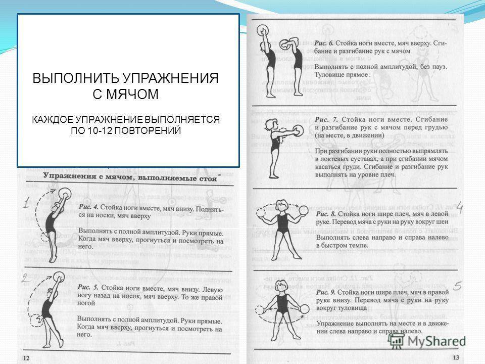 ВЫПОЛНИТЬ УПРАЖНЕНИЯ С МЯЧОМ КАЖДОЕ УПРАЖНЕНИЕ ВЫПОЛНЯЕТСЯ ПО ПОВТОРЕНИЙ