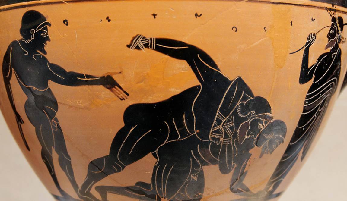 Для греков борьба была наукой и священным искусством, она представляла собой самое важное занятие для молодых людей. Спортсмены боролись голыми, их тела были покрыты оливковым маслом и слоем очень мелкого песка, чтобы защитить кожу от солнечного света или от холода зимой