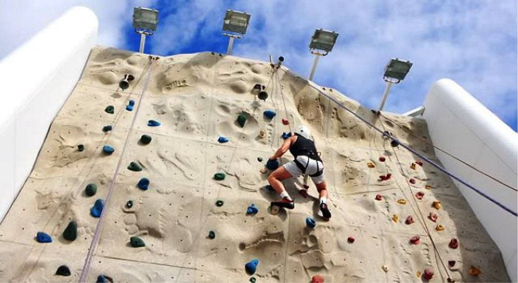 - Скалодром на трудность предназначен для лазания длинных высоких трасс. Соответственно, такой скалодром представляет собой конструкцию высотой 12-15 метров.