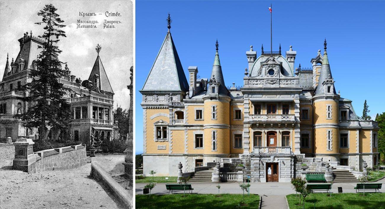 Крым традиционно был излюбленным местом отдыха царской семьи и приближенных к них вельмож, и здесь сохранились весьма интересные с точки зрения архитектуры особняки. Массандровский дворец конца 19 века недалеко от Ялты похож на рыцарский замок: его украшают башенки со шпилями, балконы с резными колоннами и «сфинксы» с женскими головами. При этом парадных залов нет.