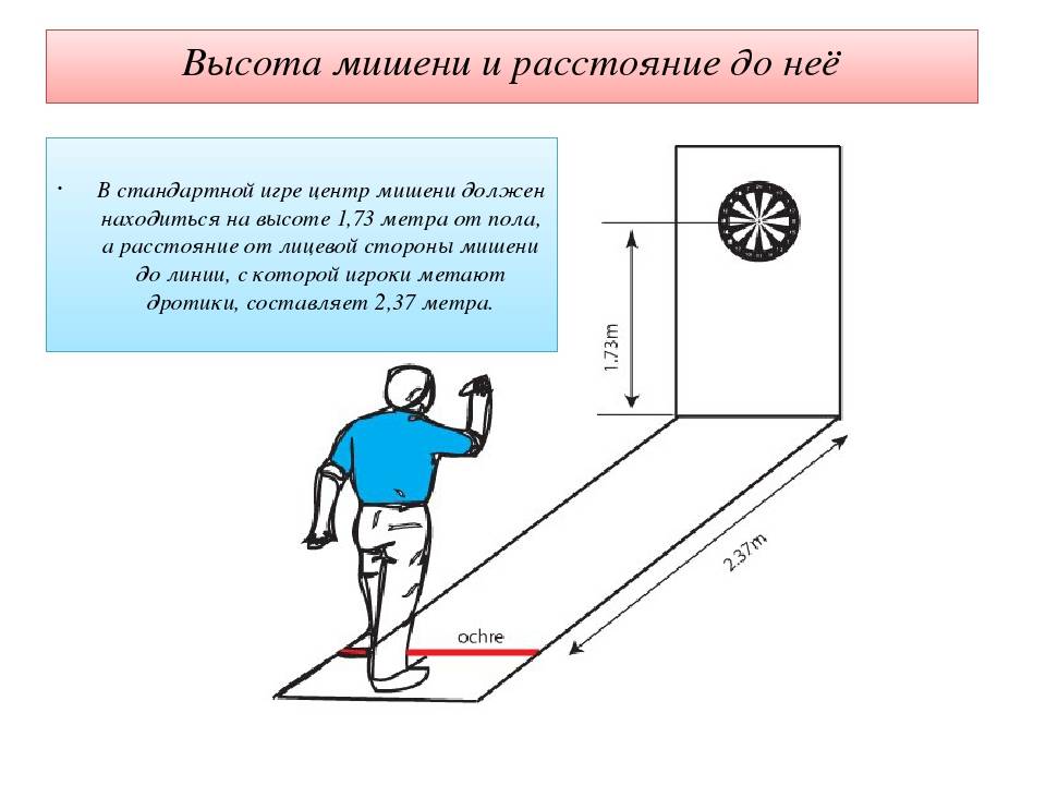 Правила дартса (их классический вариант) требуют от участников списать определенное число баллов. Если людей немного (до 5 человек), у каждого на «счете» 301 балл. Для компании количество увеличивается до 501, когда играют командами по 3–4 человека — до 1001.
