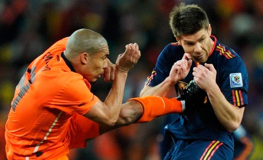 - задерживает, плюет в игрока соперника или касается мяча рукой.