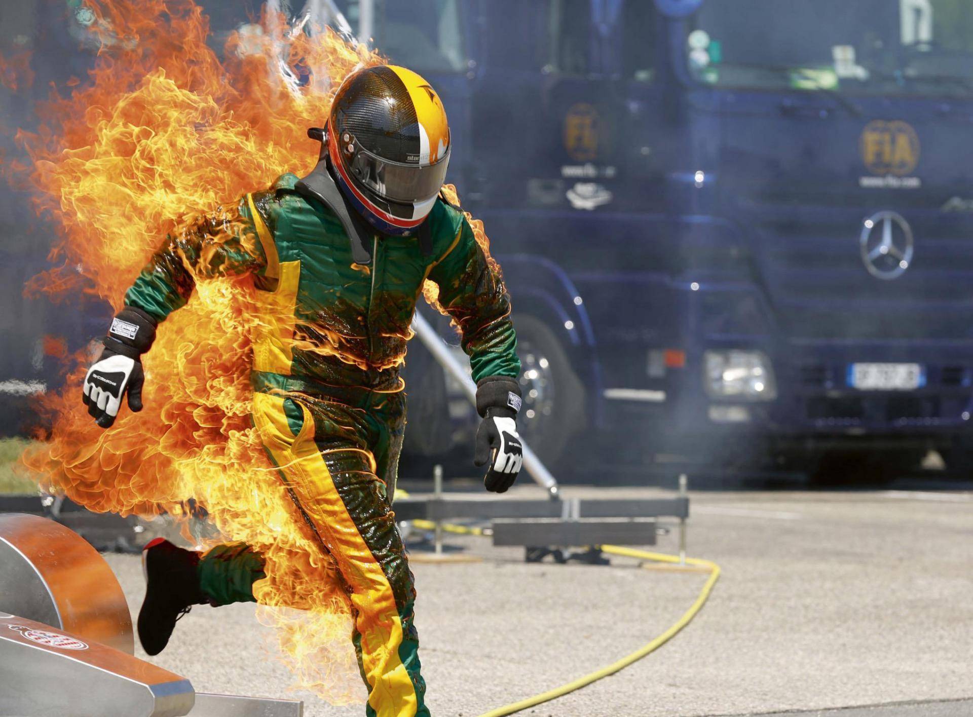 Что касается огнеупорных костюмов – до 2002 года действовал стандарт ST2000, затем стандарт ST3000, при этом на огнестойкость и ее длительность проверяется каждый элемент экипировки, сама одежда создается из сложной синтетический ткани путем машинного создания волокон.