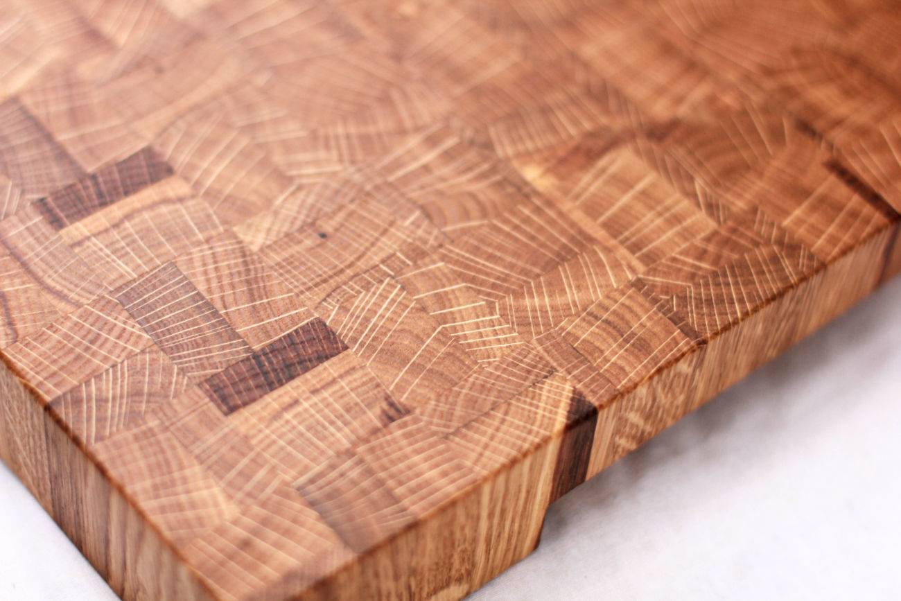 - Многие хозяйки считают, что деревянные торцевые разделочные доски требуют сложного ухода. Но, приобретая торцевые разделочные доски из дуба нужно всего лишь запастись бутылочкой минерального масла, можно также использовать льняное. Рекомендуется наносить его после каждой эксплуатации доски, предварительно нужно промыть дерево и просушить.