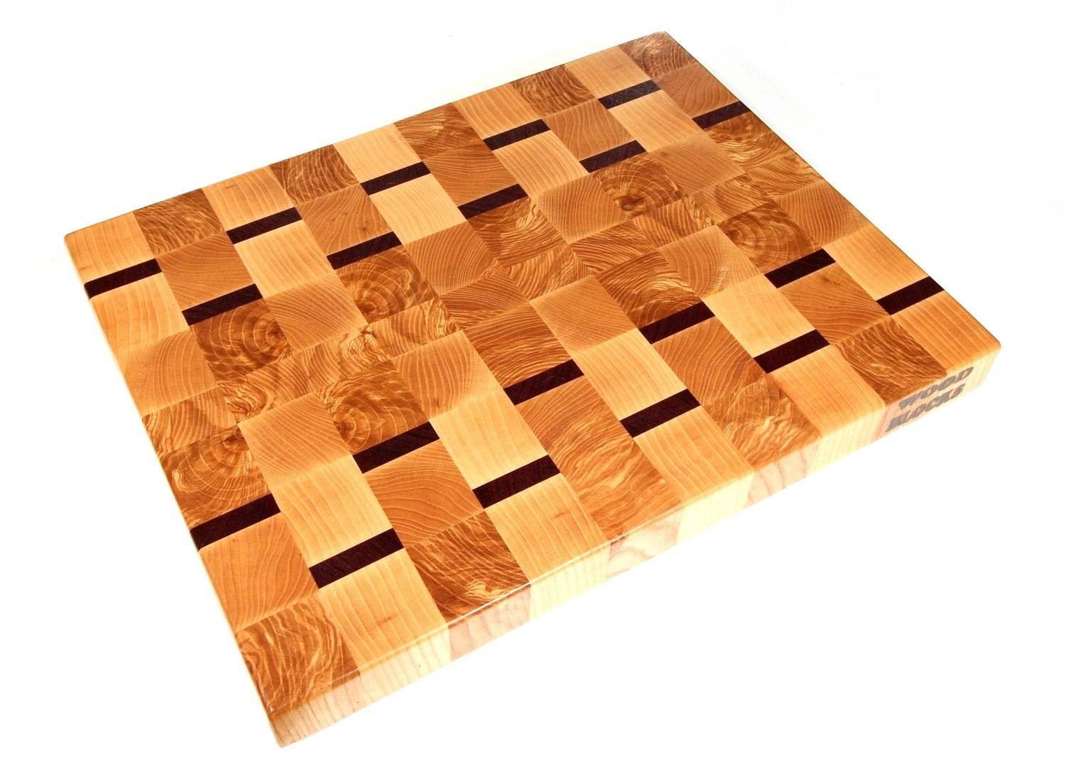 Мастера своего дела могут сделать практически любой узор на поверхности торцевой доски, ведь она состоит из отдельных брусочков. Для это достаточно использовать разные породы деревьев или даже древесину деревьев разного возраста: