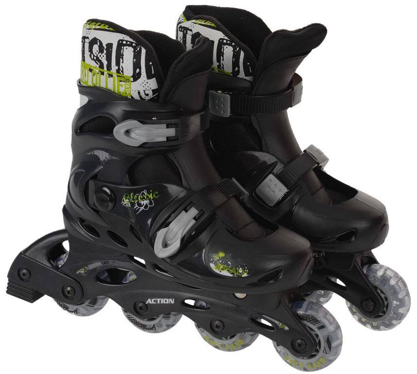 Ботинок мягкий, сделан из дышащих материалов с высокими анатомическими показателями, благодаря которым он будет принимать форму стопы ребенка, не допуская ее перегрева. Фиксация надежная, пяточный ремень на липучке, подъем закрепляется при помощи шнуровки. Внутренний сапог съемный. Раздвижной механизм предусматривает изменение размера на четыре единицы – ребенку таких роликов хватит на несколько сезонов. Рама производится из композитного пластика, способна выдержать массу человека до 50 кг. Диаметр колес составляет 72 мм, при желании можно приобрести модель с увеличенными колесами – 76 мм. Подшипники не слишком скоростные, но для ребенка высокая скорость не главное, зато они прекрасно сопротивляются даже довольно сильным ударам.