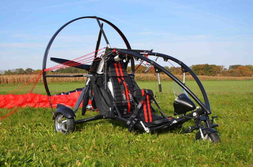 - Паратрайк. Вариация мотопараплана, у которой силовая установка крепится к тележке на колесах. Это облегчает взлет, но ухудшает мобильность.