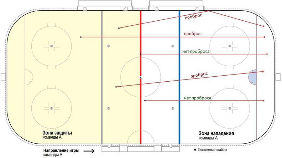 - В тот момент, когда игрок послал шайбу вперёд, пробросившая команда играла в меньшинстве;