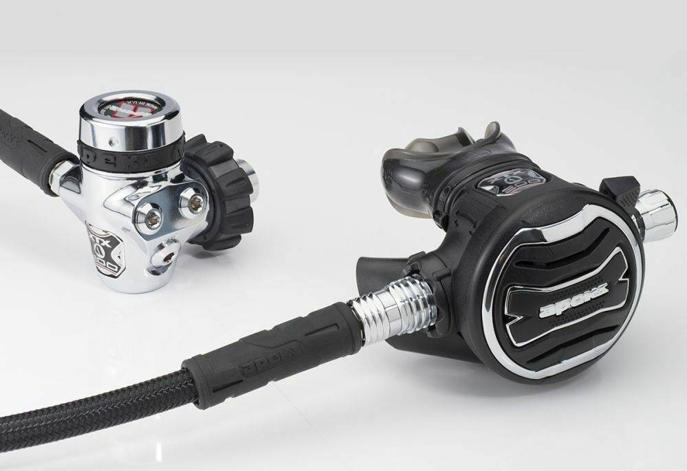 Регулятор давления акваланга нужен для того, чтобы снижать давление воздуха в баллонах до обычного, пригодного для нашего дыхания. Помимо этой функции, он распределяет поступление воздуха в иные части акваланга: к октопусу (запасному источнику дыхания) и компенсатору плавучести гидрокостюма. Сам он состоит из двух ступеней: через первую водолаз дышит, а вторая крепится к баллону с воздухом.