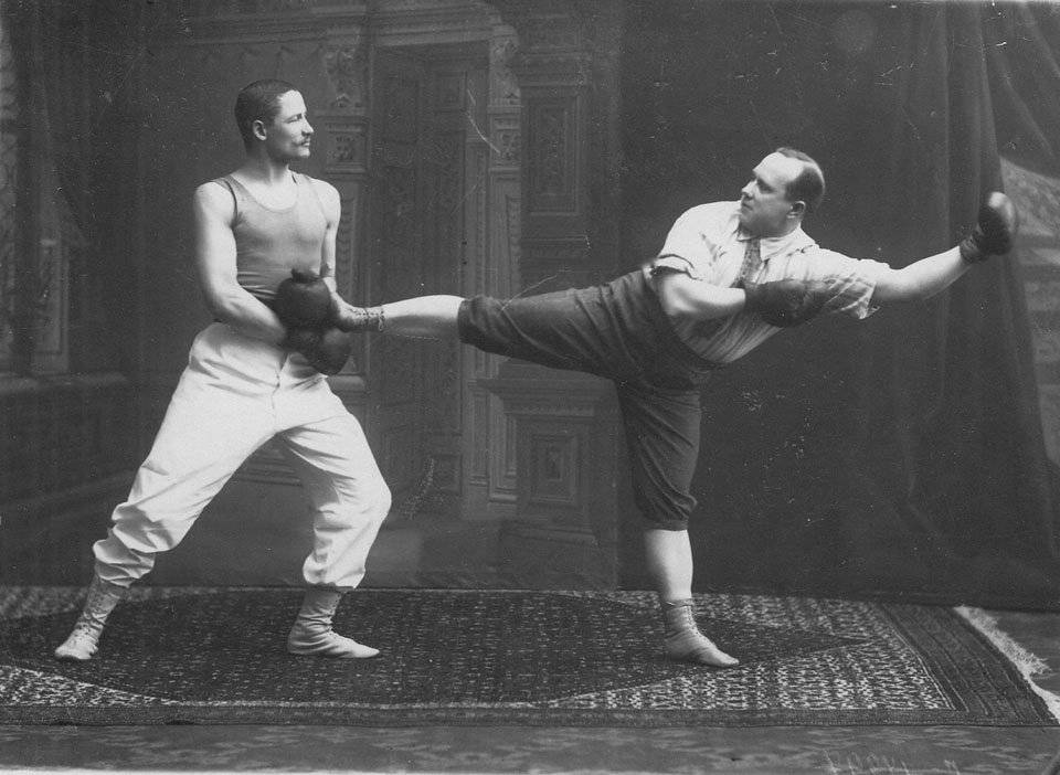 После 1870 года появляется еще одна классическая составляющая французского бокса — ля канн, или каном, то есть бой на тростях. В тот год во Франции вышел закон, запрещающий носить на улице оружие, в том числе шпаги. Разумеется, бандиты это проигнорировали и начали еще активнее промышлять грабежом безоружных богачей. Те ответили симметрично и, заменив шпаги на трости и немного подработав старое фехтовальное умение, начали от души лупцевать разбойников метровыми палками с набалдашниками.