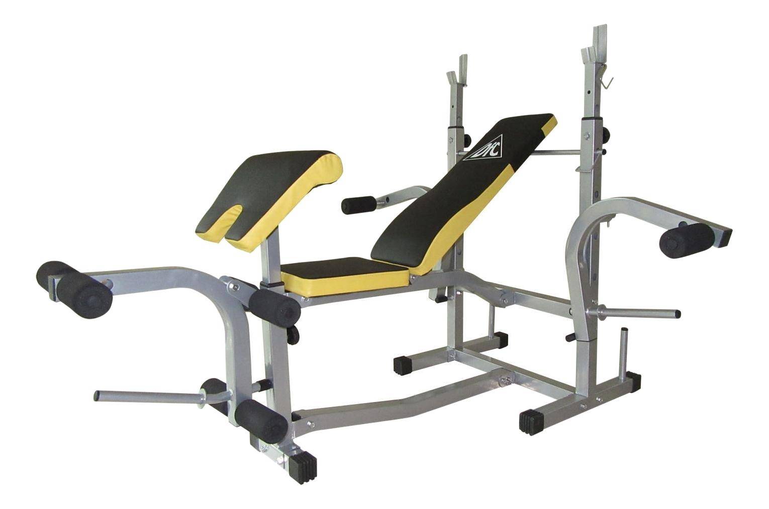 - Широкие возможности для тренировок (скамья со штангой и парой гантель позволяет тренировать почти все мышцы тела).