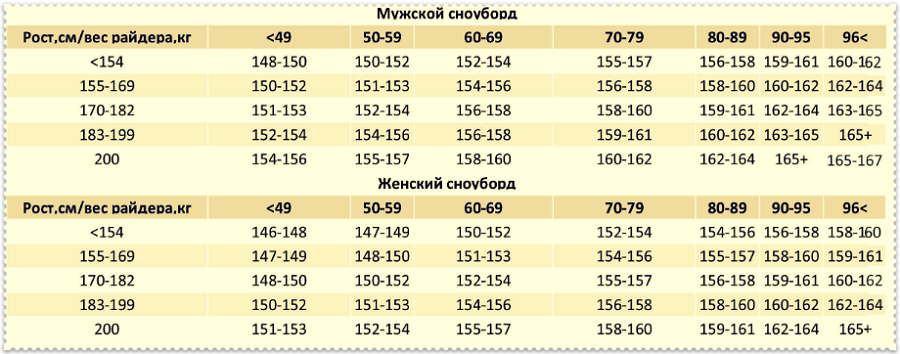 Рост и вес сноубордиста влияют на то, какой необходимо сноуборд выбрать