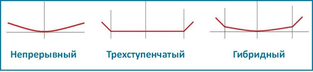 - Пятиступенчатый. Средняя часть более плоская, хвост и конец намного приподняты. Резкие переходы отсутствуют. Этот вариант более устойчив, чем гибридный.