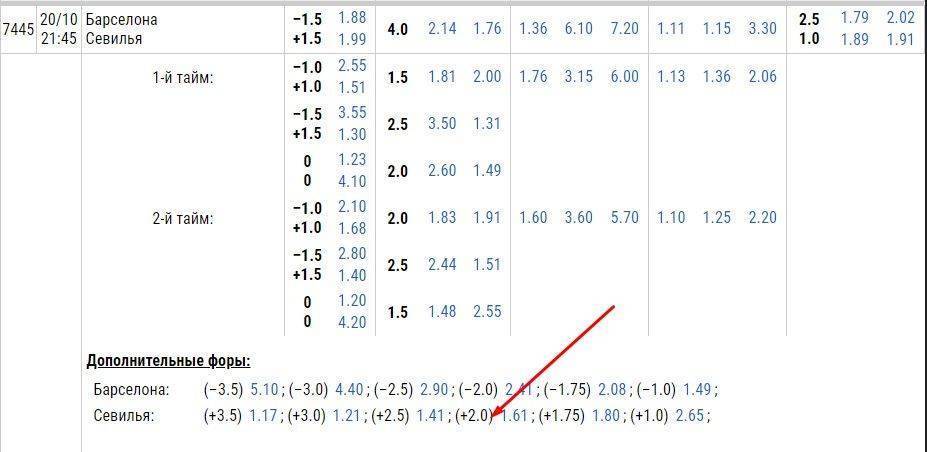Если посмотреть на статистику в других чемпионатах, то можно найти похожие ситуации. Например, перед встречей с «Севильей» «Барселона» часто играла вничью и один раз уступила, и соперник даже опередил каталонцев в таблице. Но кэф на «Севилью» с форой +2, играющей на выезде, составляет 1,6: