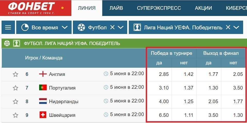 - Выйдет ли команда в 1/8, четвертьфинал, полуфинал и другие варианты.