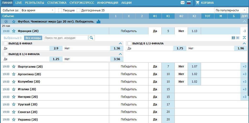 - Находим удобный тип экспресса и ставим на желаемые результаты интересных нам событий, проводим денежную транзакцию.