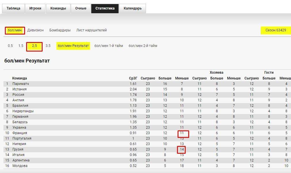 Здесь мы выбрали позиции на «больше» и «меньше». Разобраться с правильной сделкой поможет статистика результативности. На своих сайтах букмекеры создают такой раздел именно для виртуальных дисциплин. В данном случае нас интересуют количественные показатели Грузии и Украины. Переходим на соответствующую вкладку и получаем такой расклад: