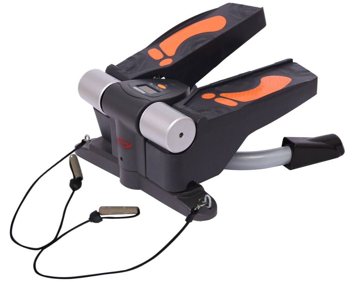 Данный степпер отличается от описанных ранее наличием эспандеров, что порадует практичных людей, ведь нагрузка идет не только на ноги. Данная связка позволяет укрепить сердечно-сосудистую систему, а также общую выносливость вашего тела с большей эффективностью. Максимальный вес, который он выдерживает составляет 110 кг.