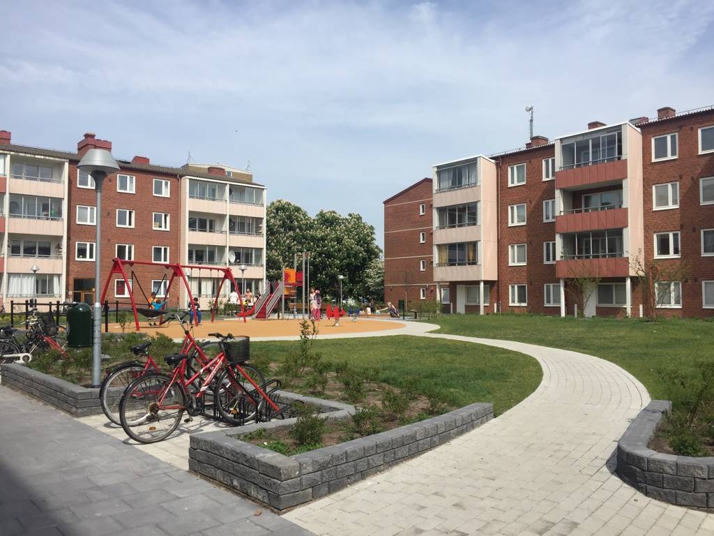 Может быть, мне повезло, а может, за последние десять лет и правда многое изменилось, но ни хмурых улиц, ни жестких парней, ошивающихся на них, я так и не встретил. На фото ниже – типичный двор Русенгорда – с детской площадкой, парочкой темноволосых парней, решивших приготовить шашлык, и уймой – уймой – велосипедов.