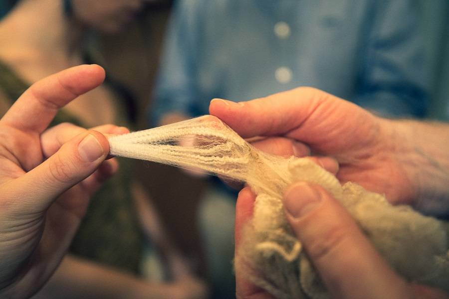 Сначала обезжириваем внешнюю поверхность влажной салфеткой, убрать лишние соринки можно старой зубной щёткой. Далее, выдавливаем клей и широко распределяем его поверх отверстия на коже или ткани. Полимер полностью высохнет через 10 часов, образовав поверх дырки плотный герметичный шов.