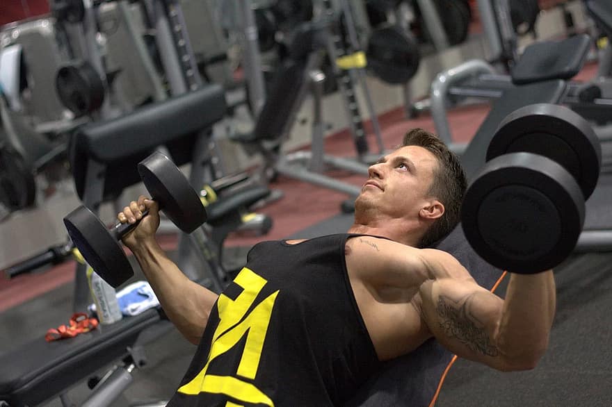 - сведение рук с гантелями на скамье: прямой или наклонной;