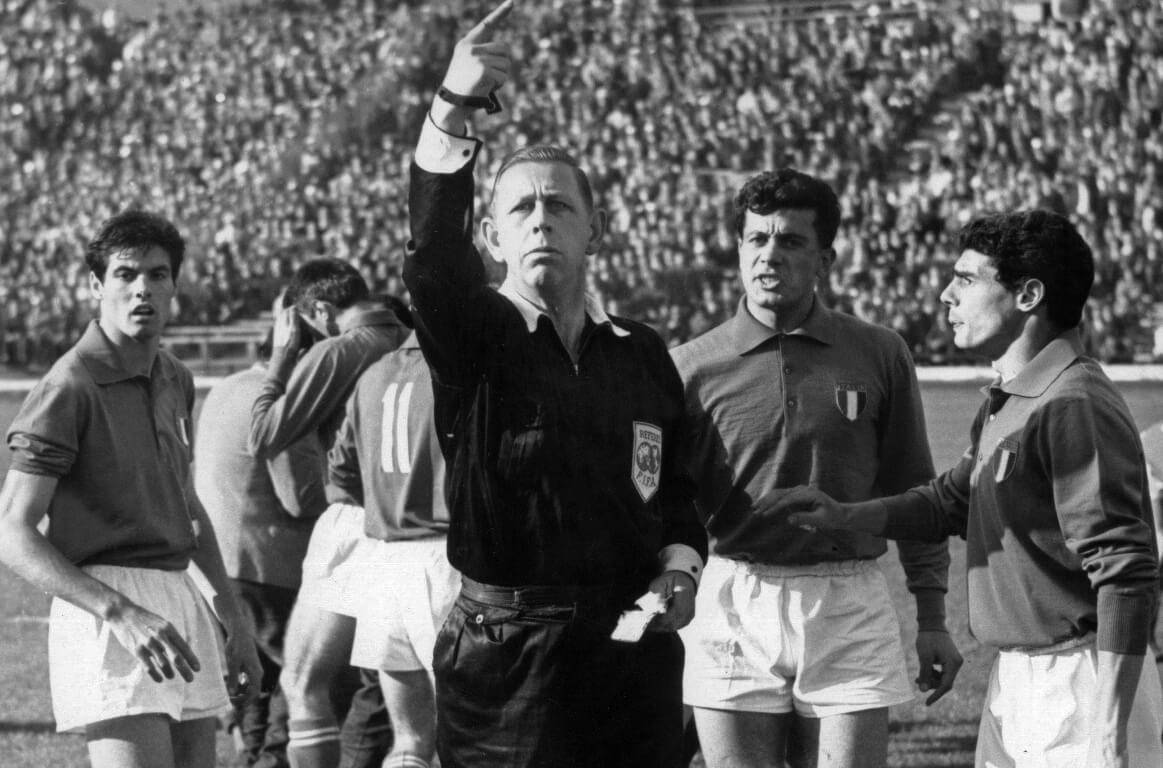 А немецкий арбитр Курт Ченшер был первым, кто показал желтую карточку. Он продемонстрировал ее футболисту сборной СССР Кахе Асатиани, в матче Мексика – СССР.
